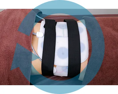 腹部に貼り付けたパッドからの刺激が腸の形に合わせて動きます。6つのポイントを腸の形に合わせて刺激することでより、デトックス効果を促します。